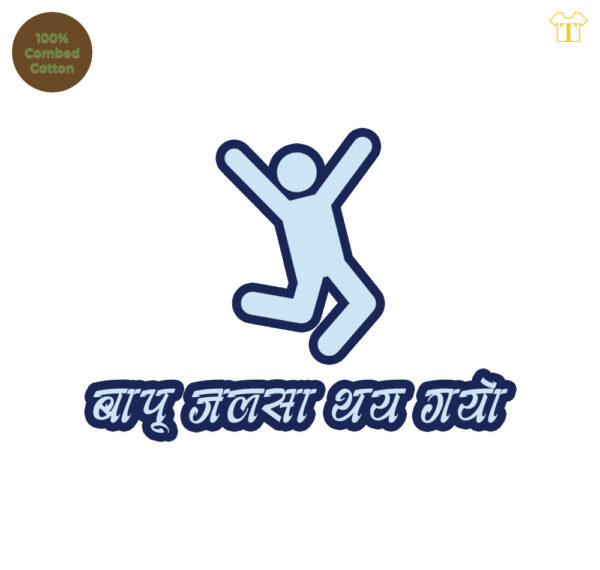 Tkashi Bapu Jalsa Thay Gayo Printed Half Sleeve T-Shirt Step into a world of playful style with the Bapu Jalsa Thay Gayo Printed Half Sleeve T-Shirt. This trendy t-shirt features: