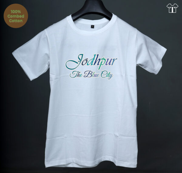 Tkashi Rajasthan Jodhpur Blue City Printed Half Sleeve T-Shirt Transport yourself to the blue paradise of Jodhpur with this stunning Rajasthan Jodhpur Blue City Printed on Half Sleeve T-Shirt. This 100% bio wash cotton tee brilliantly captures the mesmerizing blue hues of the iconic “Blue City” through its colorful graphics.